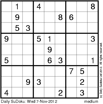 The Daily SuDoku: Wed 7-Nov-2012