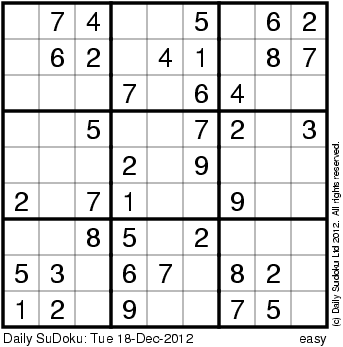The Daily SuDoku: Tue 18-Dec-2012
