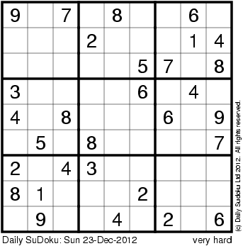 The Daily SuDoku: Sun 23-Dec-2012