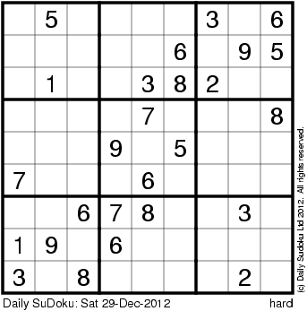 The Daily SuDoku: Sat 29-Dec-2012