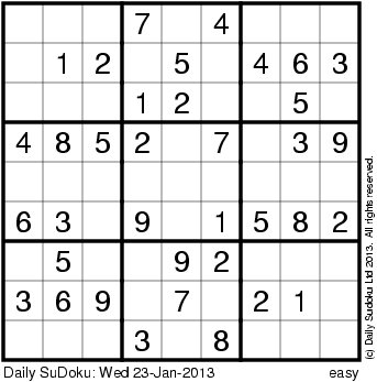 The Daily SuDoku: Wed 23-Jan-2013