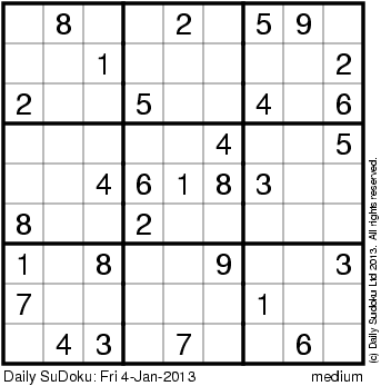 The Daily SuDoku: Fri 4-Jan-2013