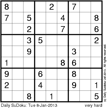 The Daily SuDoku: Tue 8-Jan-2013