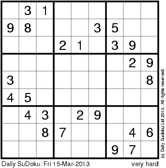 The Daily SuDoku: Fri 15-Mar-2013