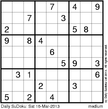 The Daily SuDoku: Sat 16-Mar-2013