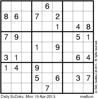 The Daily SuDoku: Mon 15-Apr-2013