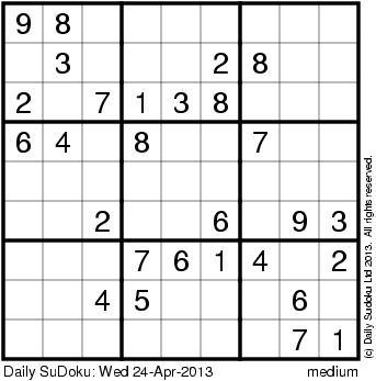 The Daily SuDoku: Wed 24-Apr-2013