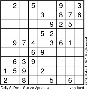 The Daily SuDoku: Sun 28-Apr-2013