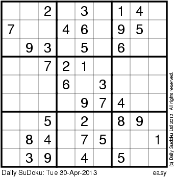 The Daily SuDoku: Tue 30-Apr-2013