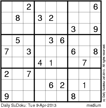 The Daily SuDoku: Tue 9-Apr-2013