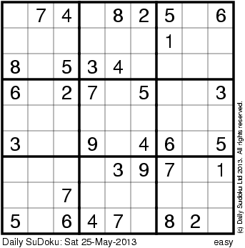 The Daily SuDoku: Sat 25-May-2013