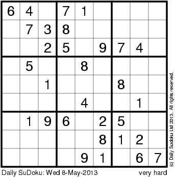 The Daily SuDoku: Wed 8-May-2013