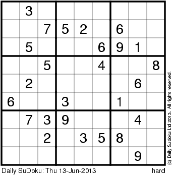 The Daily SuDoku: Thu 13-Jun-2013