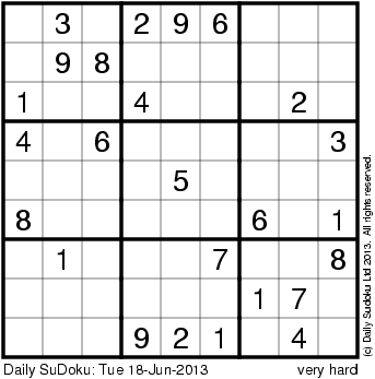 The Daily SuDoku: Tue 18-Jun-2013