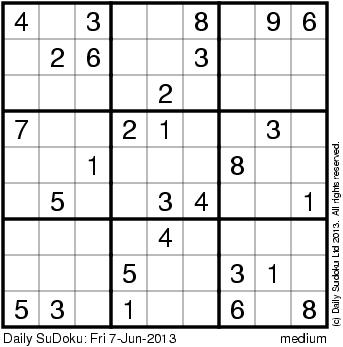 The Daily SuDoku: Fri 7-Jun-2013