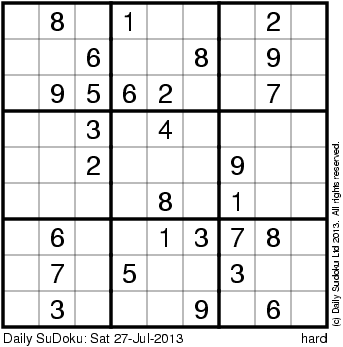 The Daily SuDoku: Sat 27-Jul-2013