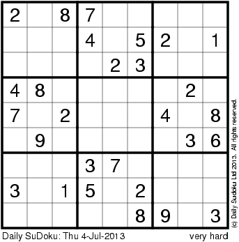 The Daily SuDoku: Thu 4-Jul-2013