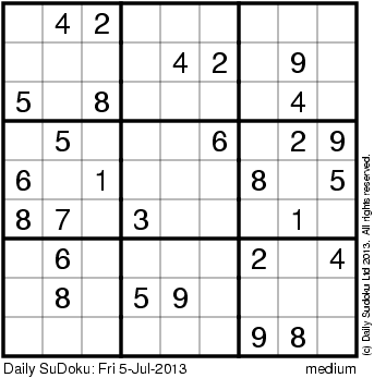 The Daily SuDoku: Fri 5-Jul-2013