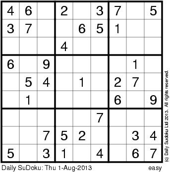The Daily SuDoku: Thu 1-Aug-2013
