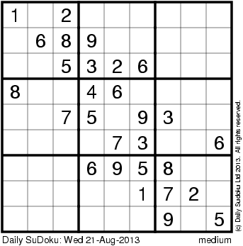 The Daily SuDoku: Wed 21-Aug-2013