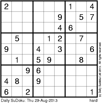 The Daily SuDoku: Thu 29-Aug-2013