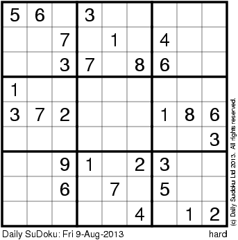 The Daily SuDoku: Fri 9-Aug-2013
