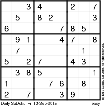 The Daily SuDoku: Fri 13-Sep-2013