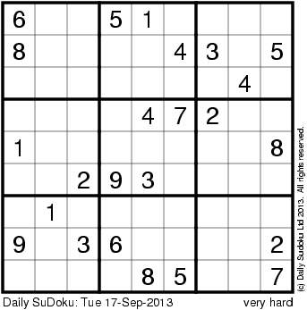 The Daily SuDoku: Tue 17-Sep-2013