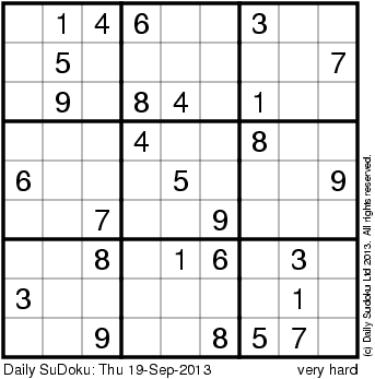 The Daily SuDoku: Thu 19-Sep-2013