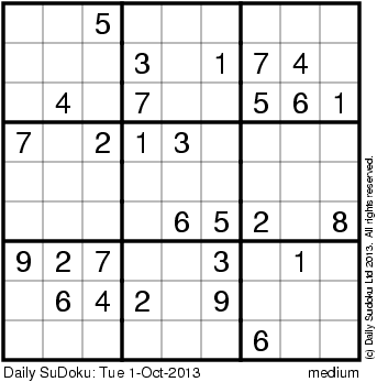 The Daily SuDoku: Tue 1-Oct-2013