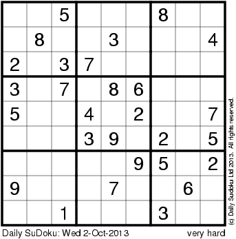 The Daily SuDoku: Wed 2-Oct-2013