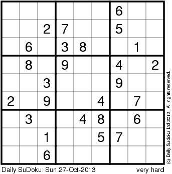 The Daily SuDoku: Sun 27-Oct-2013