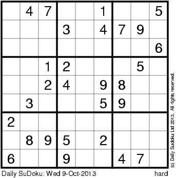 The Daily SuDoku: Wed 9-Oct-2013