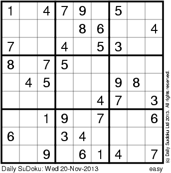 The Daily SuDoku: Wed 20-Nov-2013
