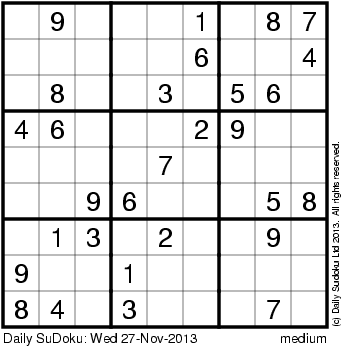 The Daily SuDoku: Wed 27-Nov-2013