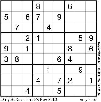 The Daily SuDoku: Thu 28-Nov-2013