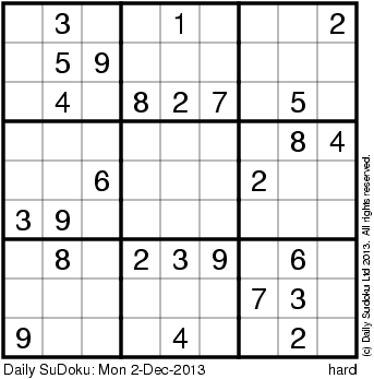The Daily SuDoku: Mon 2-Dec-2013