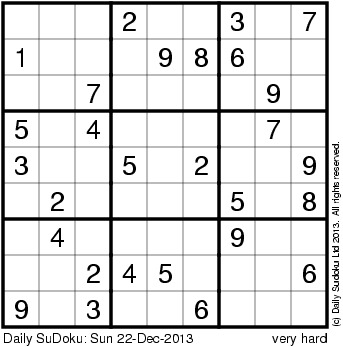 The Daily SuDoku: Sun 22-Dec-2013