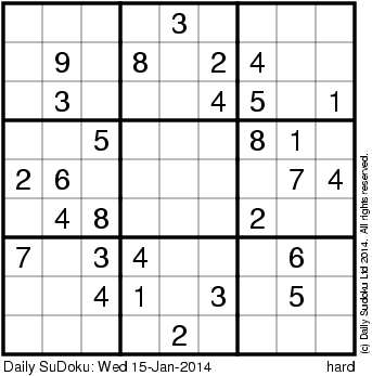 The Daily SuDoku: Wed 15-Jan-2014