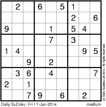 The Daily SuDoku: Fri 17-Jan-2014