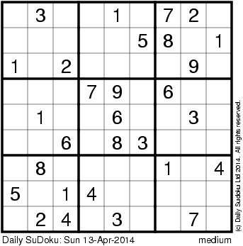The Daily SuDoku: Sun 13-Apr-2014