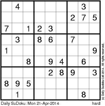 The Daily SuDoku: Mon 21-Apr-2014