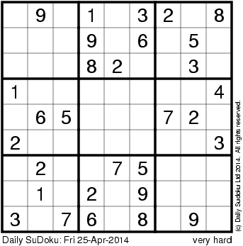 The Daily SuDoku: Fri 25-Apr-2014