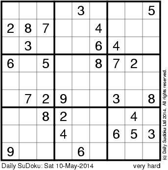 The Daily SuDoku: Sat 10-May-2014
