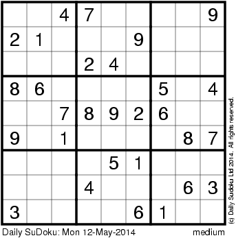 The Daily SuDoku: Mon 12-May-2014