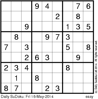 The Daily SuDoku: Fri 16-May-2014