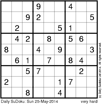 The Daily SuDoku: Sun 25-May-2014