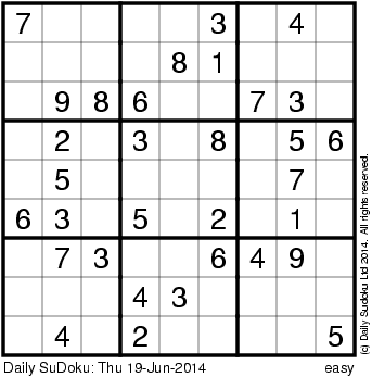 The Daily SuDoku: Thu 19-Jun-2014