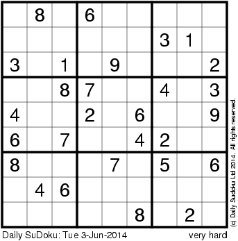 The Daily SuDoku: Tue 3-Jun-2014