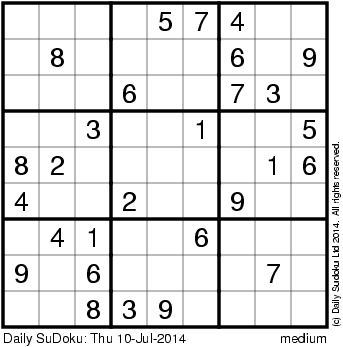 The Daily SuDoku: Thu 10-Jul-2014